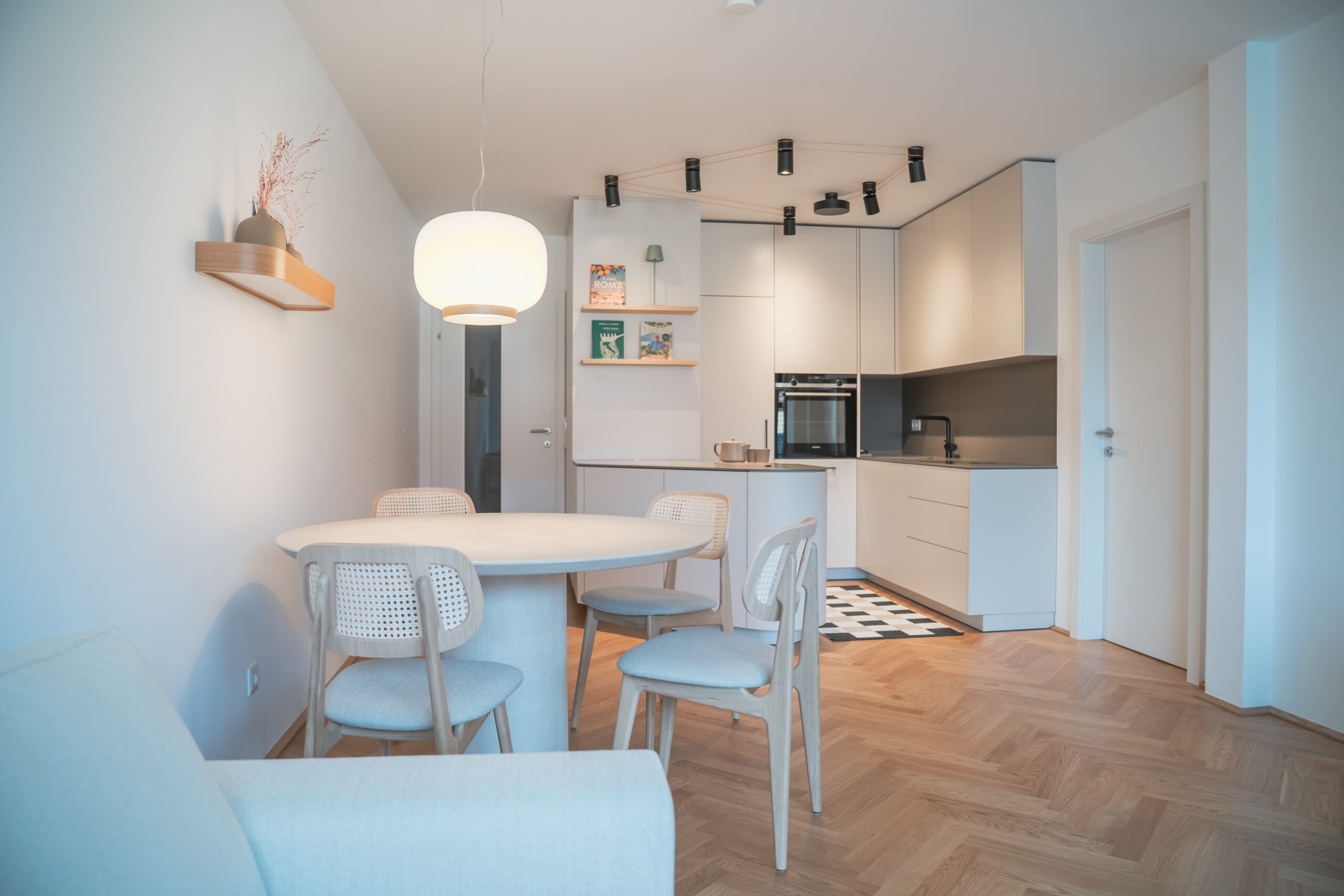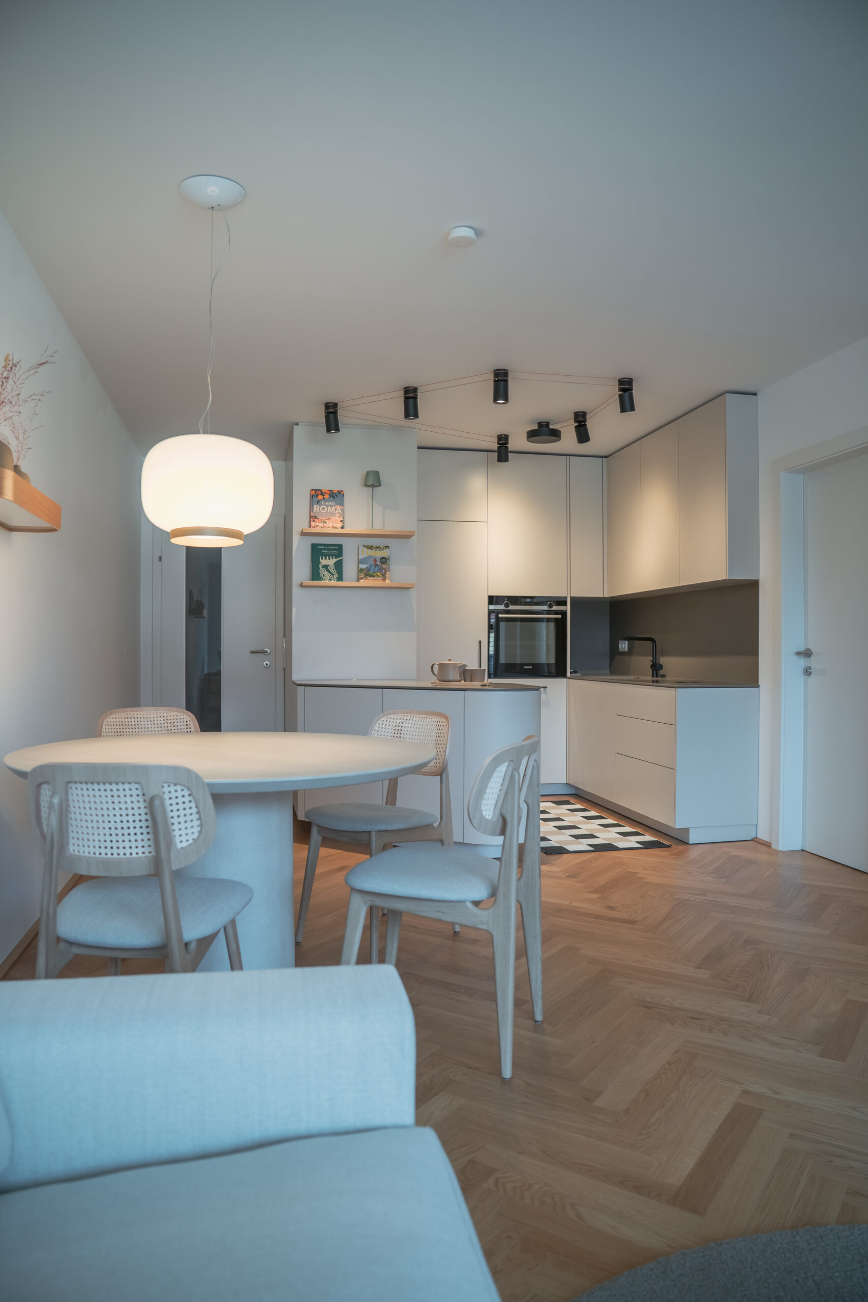 Für diese 66 m² große Wohnung hat das Innenarchitektur-Team von Leimgruber Innenraum ein offenes, helles und funktionales Raumkonzept geschaffen, das zeitlose Eleganz mit moderner Gemütlichkeit verbindet. Ziel war es maximalen Raum zum Wohlfühlen entstehen zu lassen, ohne dabei an Funktionalität einzubüßen. Mit ungewöhnlichen und gut durchdachten Lösungen sowie einem ausgeklügelten Spiel von Proportionen entstand ein Schmuckstück einer Wohnung, die ganz auf die Bedürfnisse ihrer BewohnerInnen zugeschnitten ist.